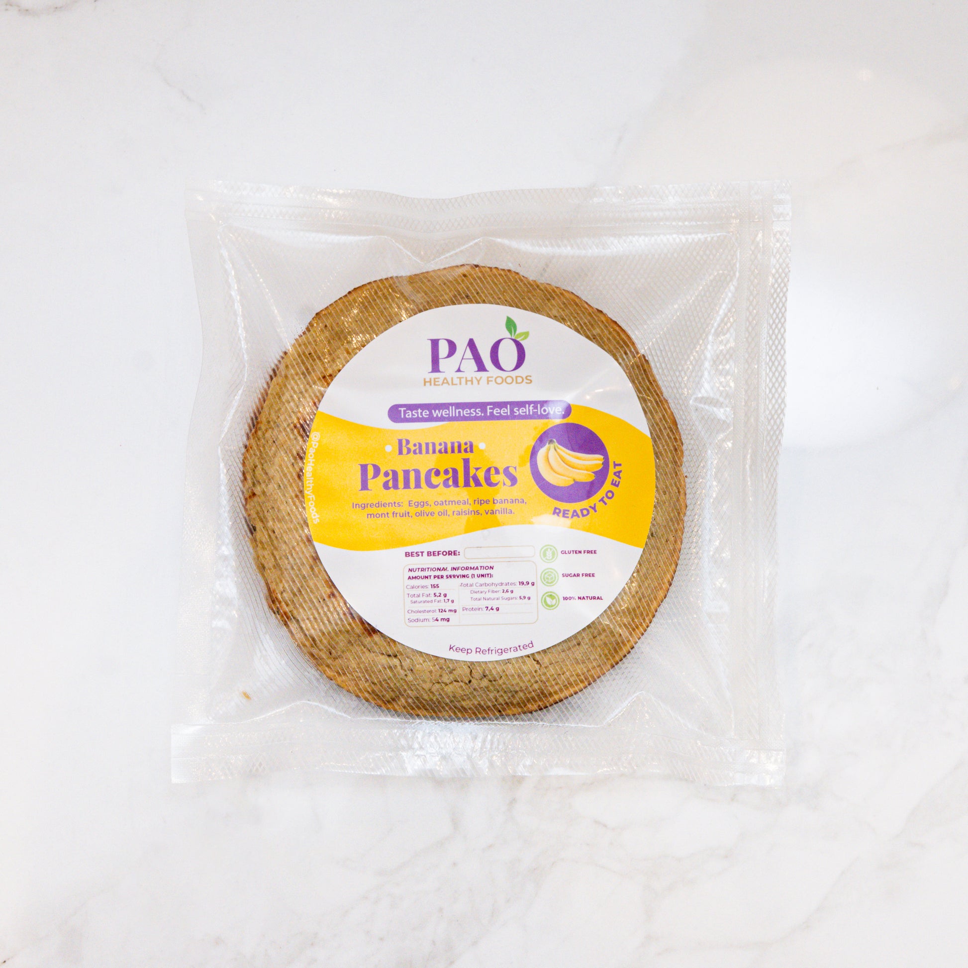 Ingredients: Oats, eggs, banana, vanilla, natural sweetener.