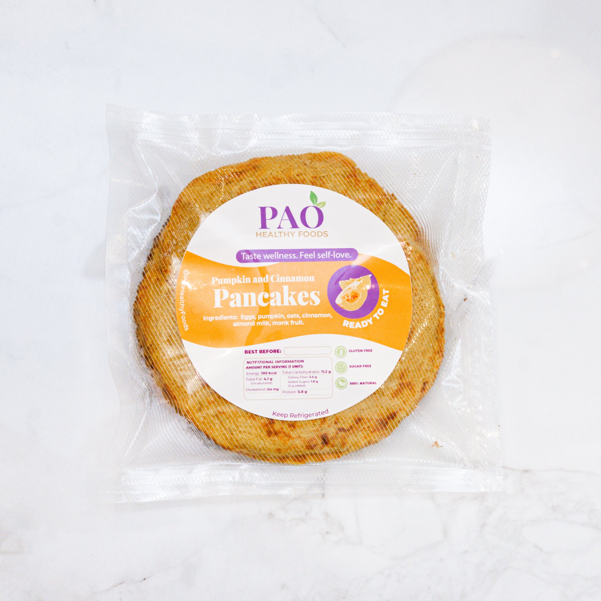 Ingredients: Pumpkin, oats, eggs, cinnamon, almond milk, natural sweetener.